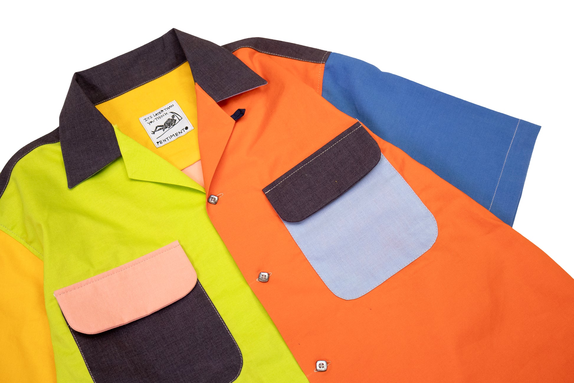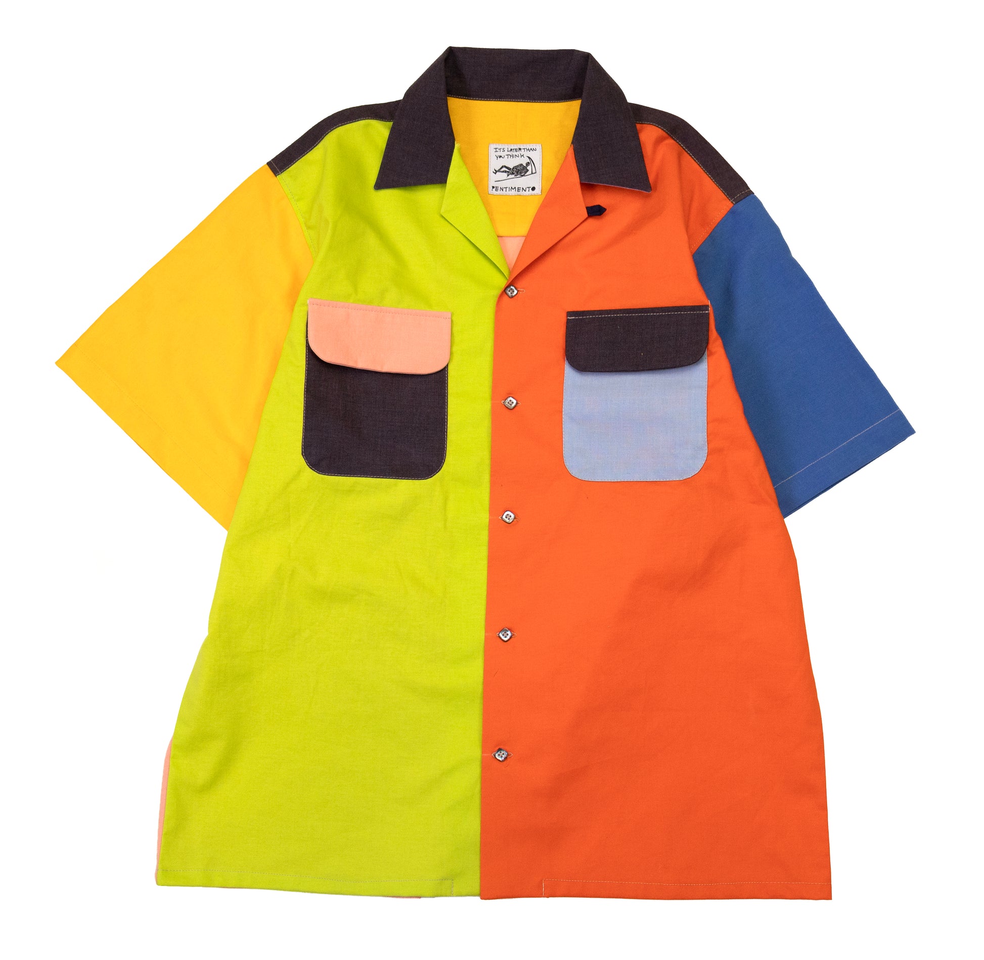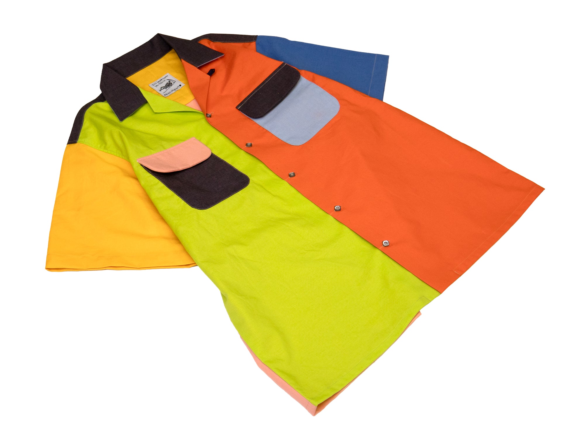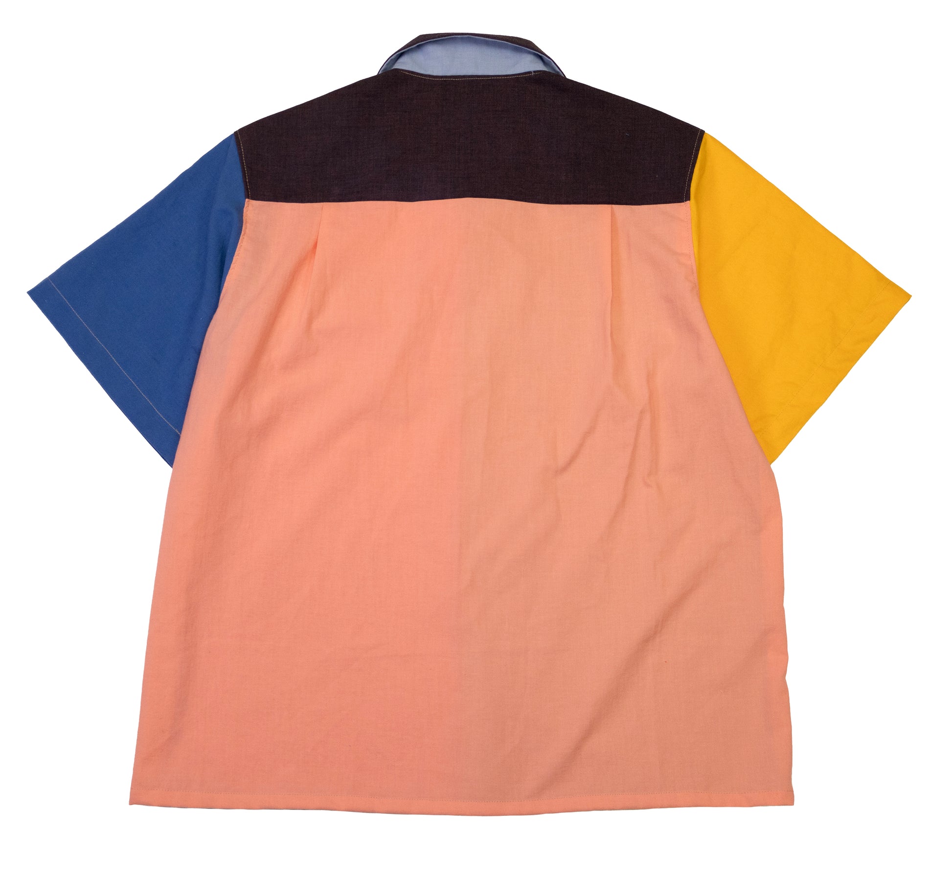 mixed panels of cotton/rayon. loop collar. vintage buttons. fits like a large.