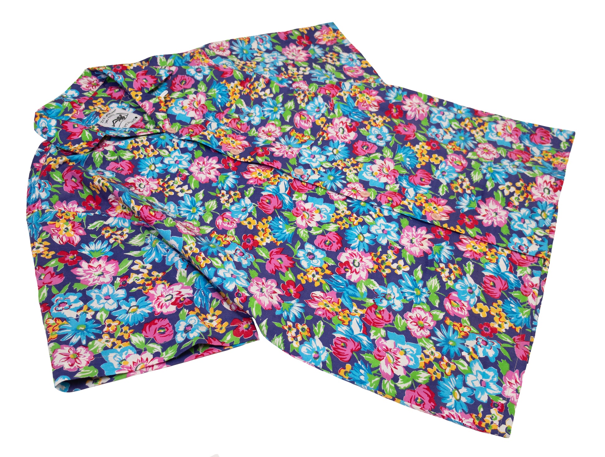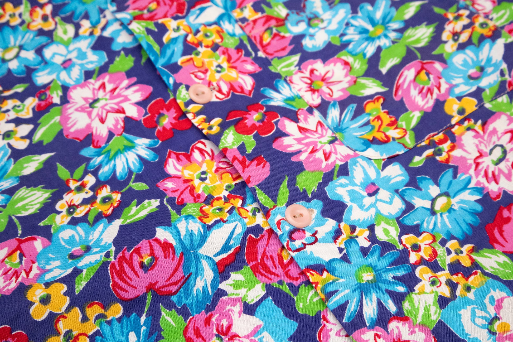 vintage floral printed cotton. loop collar. vintage buttons. fits like a large.