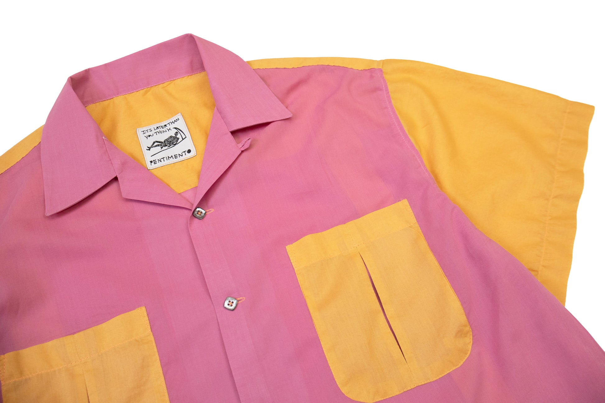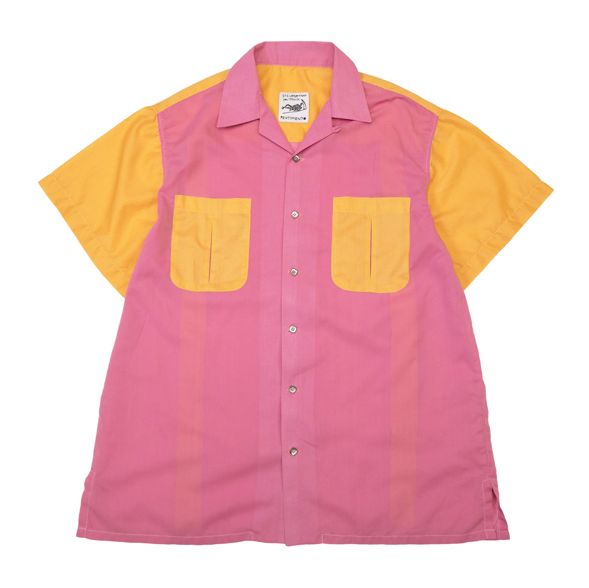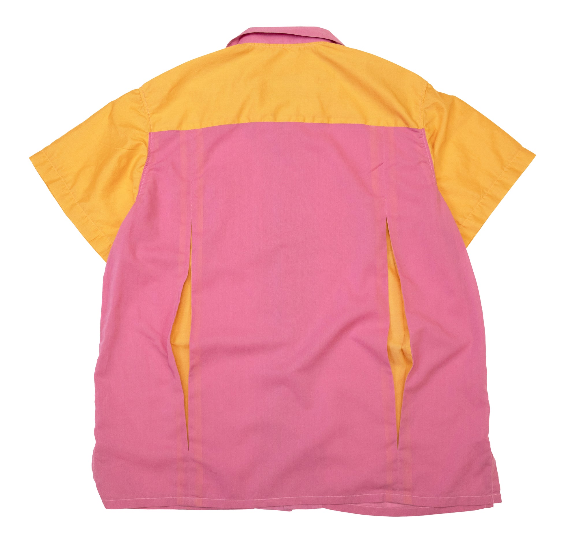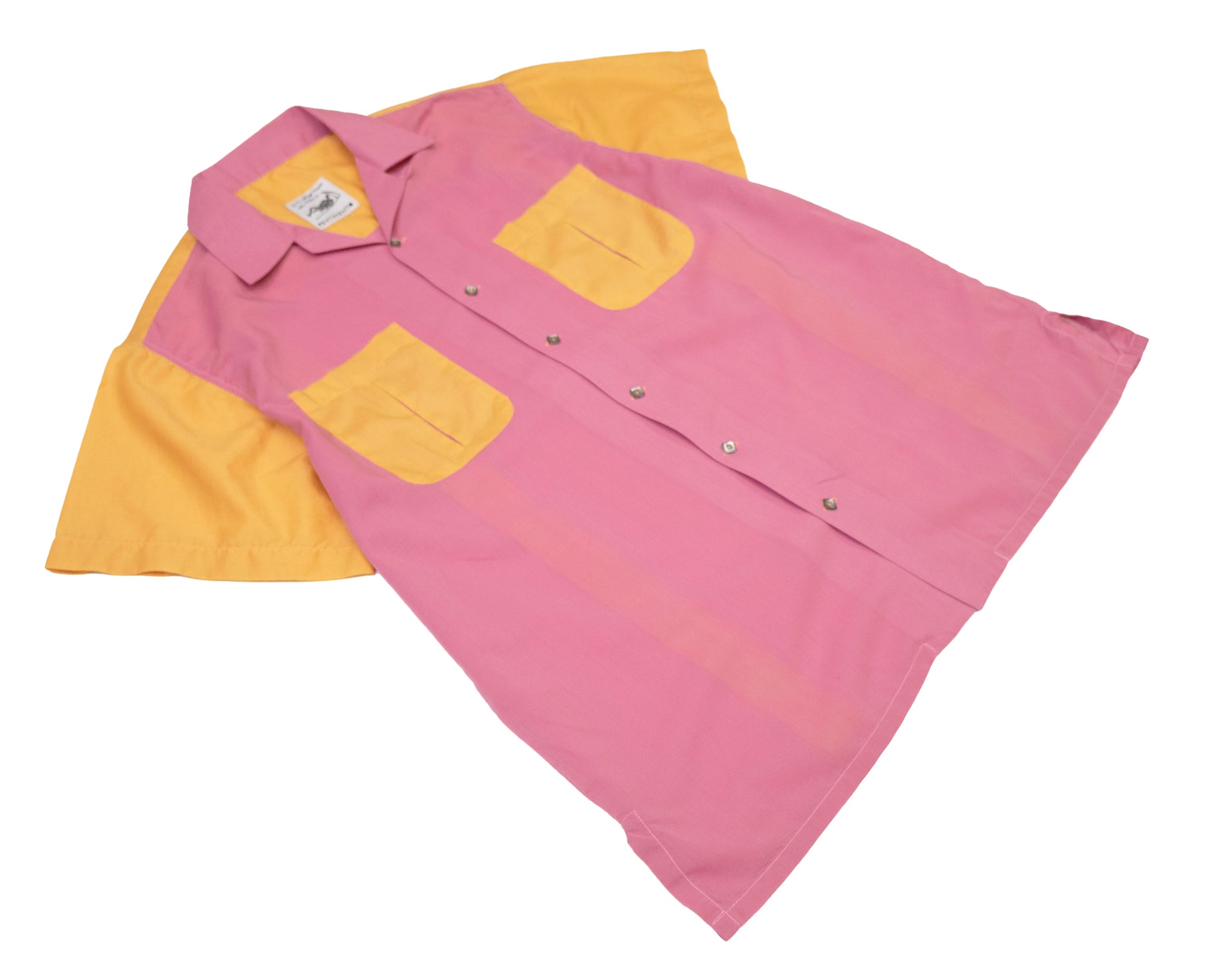 ultra light weight cotton in sherbet tones. pleated pockets and back. loop collar. split tails. vintage buttons. fits like a large.